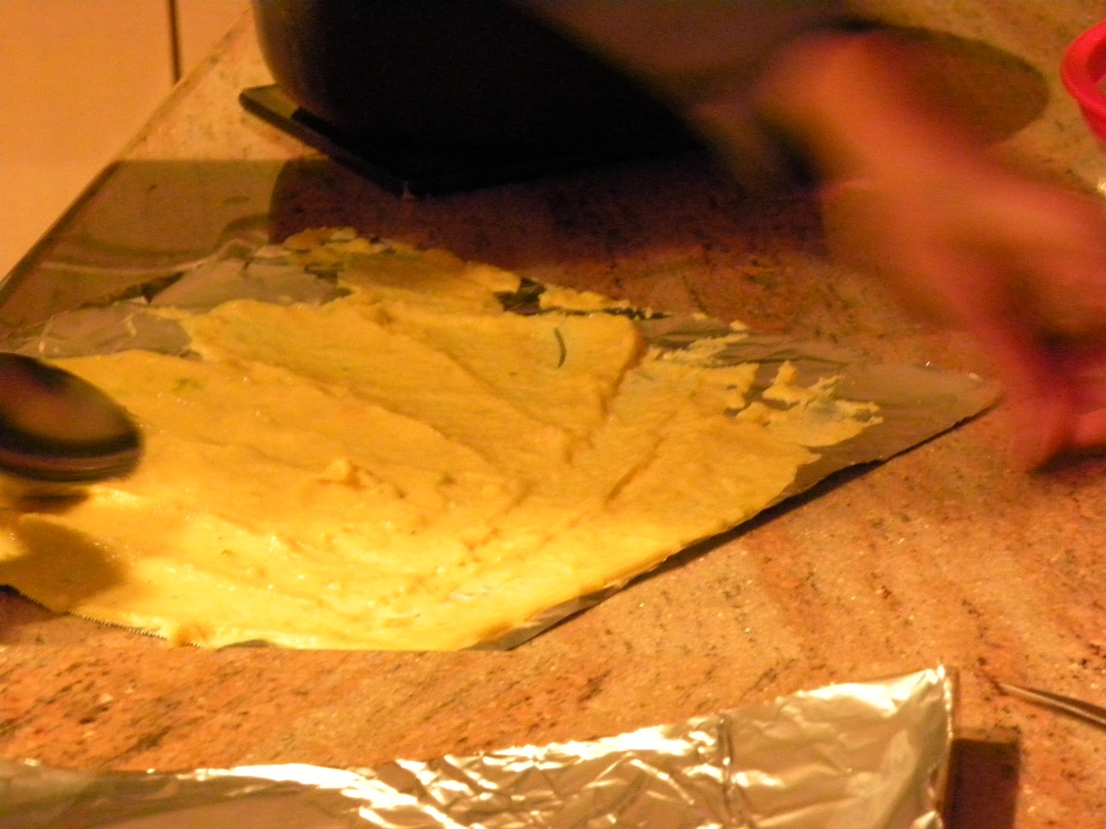 - Spread mixture very thinly and quickly on foil so mixture does not get cold.